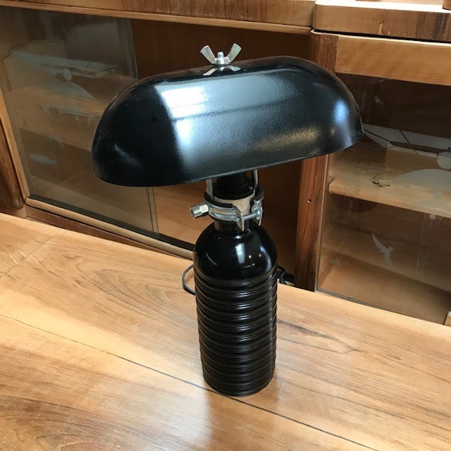 Vecchi oggetti e una borraccia di alluminio recuperati e modificati nel laboratorio artigianale ImprontArt per diventare una lampada. Oggetti unici e divertenti per l’arredamento e l’illuminazione della tua casa.